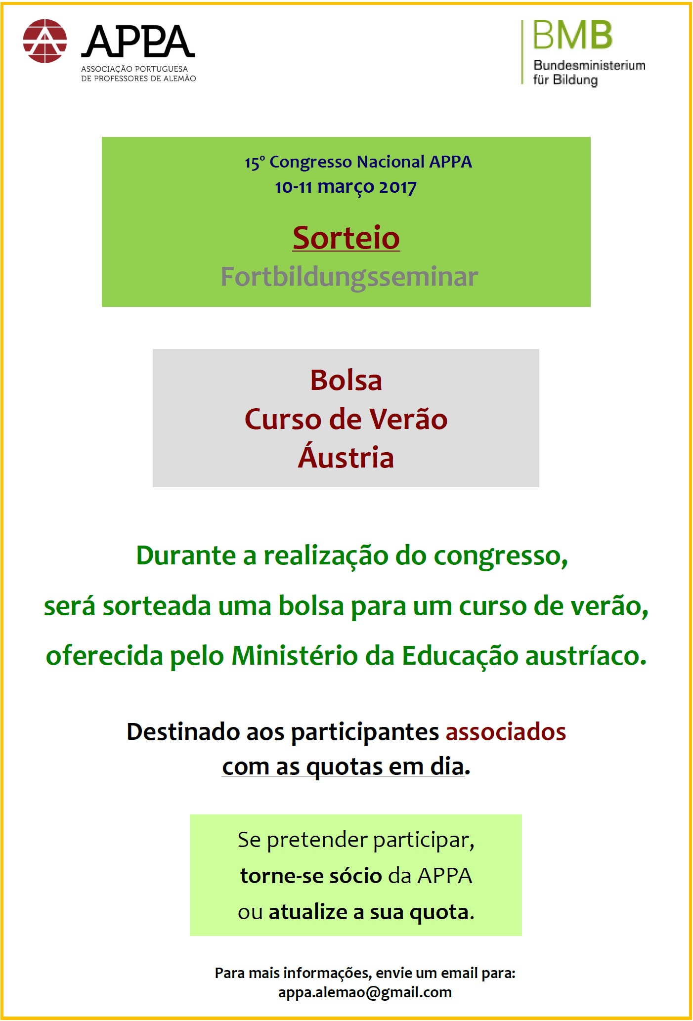 Durante a realização do Congresso APPA 2017 será sorteada uma bolsa para um curso de verão na Áustria.