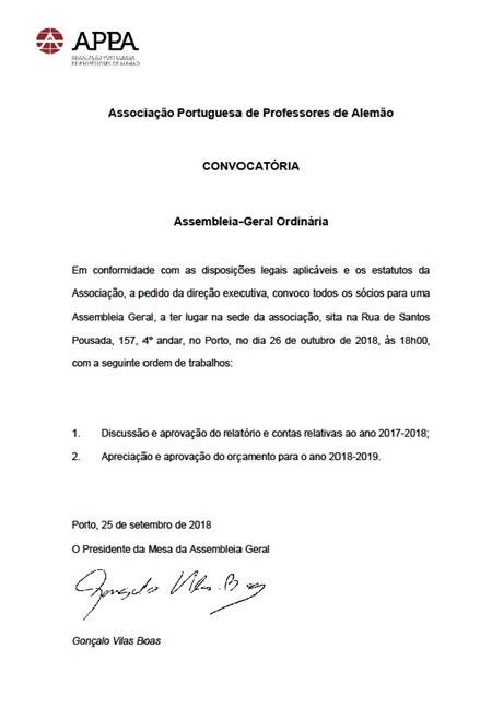 Reunião da Assembleia Geral da Associação Portuguesa de Professores de Alemão.